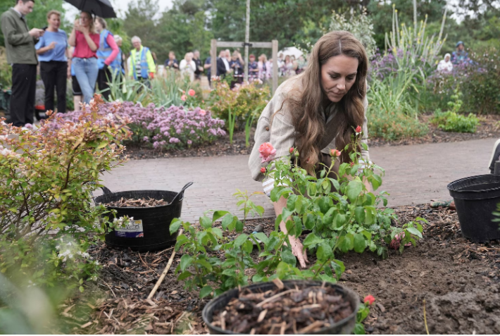 While at the hospital, Kate visited the RHS Wellbeing Garden, where she took time to plant some roses.